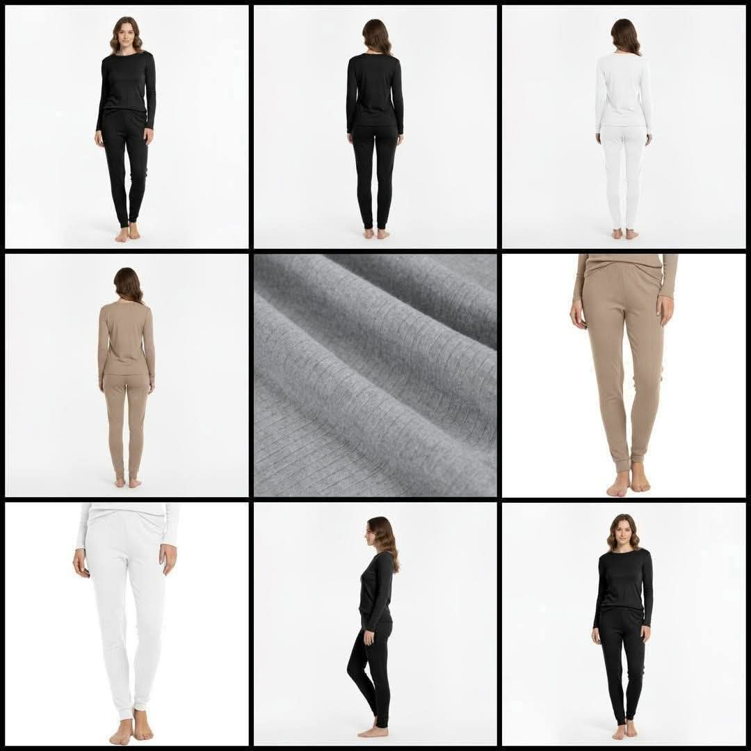 Pantaloni termici pentru femei, cu material reiat și căptușeală moale din fleece.