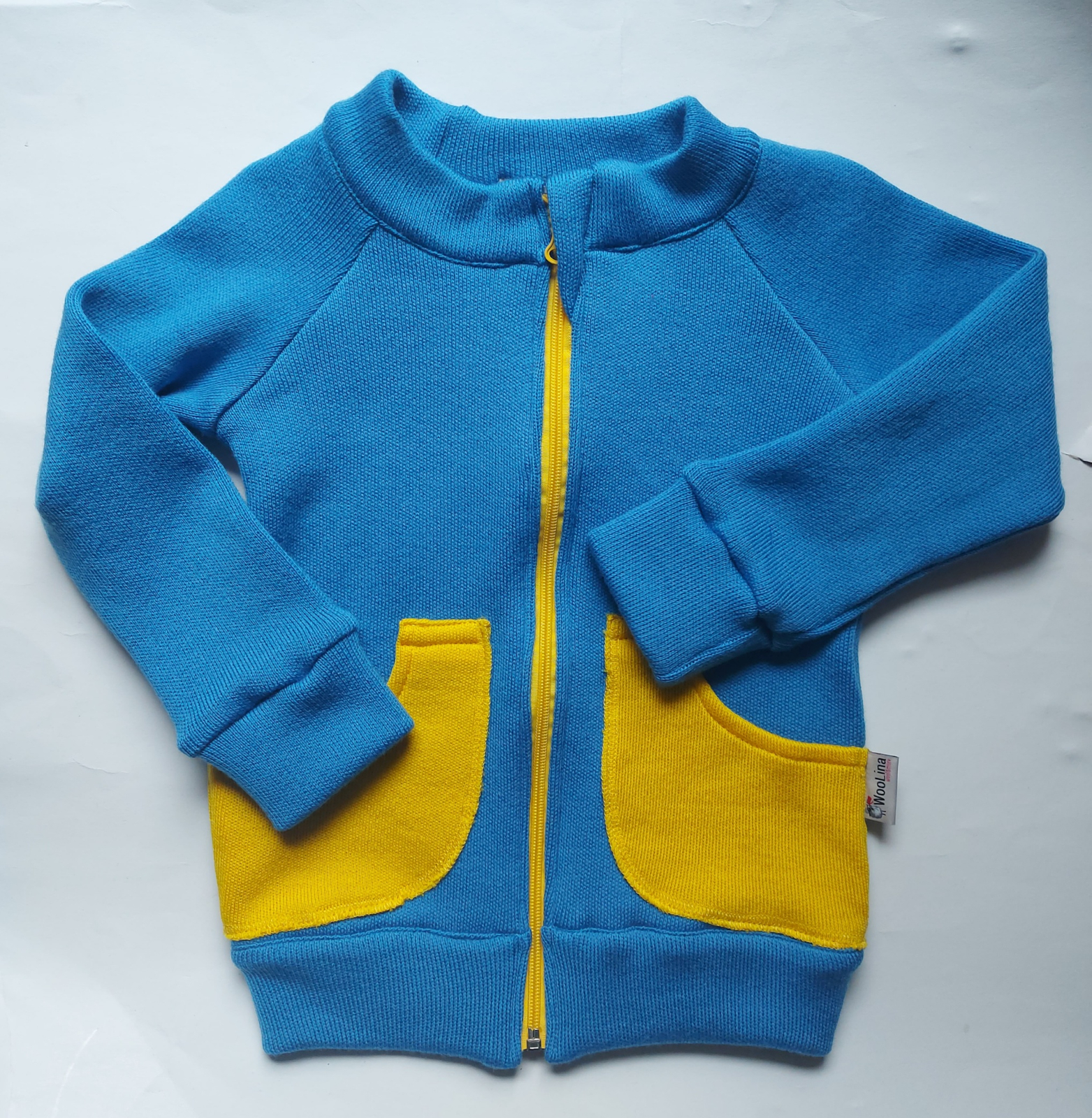 Cardigan din lână merinos 100% extrafin, gsm 385 g/m2 (potrivit pentru strat 1). Se închide cu fermoar.