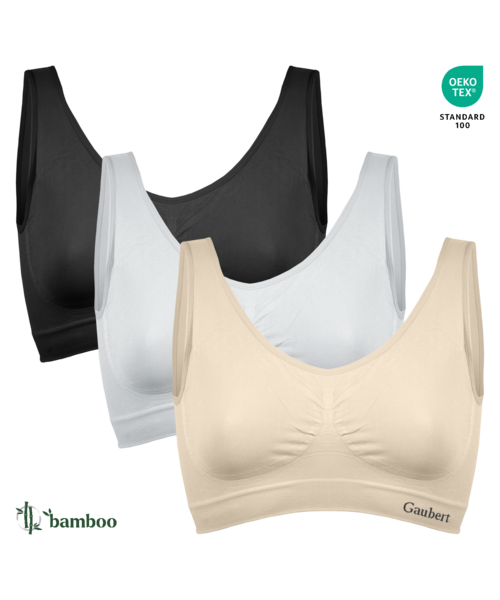 SET 3 BUSTIERE din bambus ultra lejere, CU burete DETASABIL cu barete LATE. Nu are închidere la spate și nu are întărituri la sân.