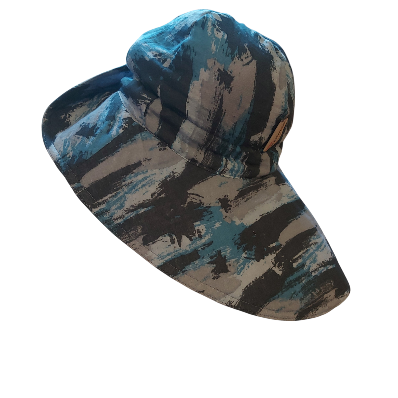 Pălărie de soare din 100% muselina de bumbac, model CAMUFLAJ ALBASTRU